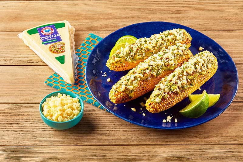 - Coat each ear with the remainder of Gayo Azul Cotija Cheese. Sprinkle with Cilantro.
